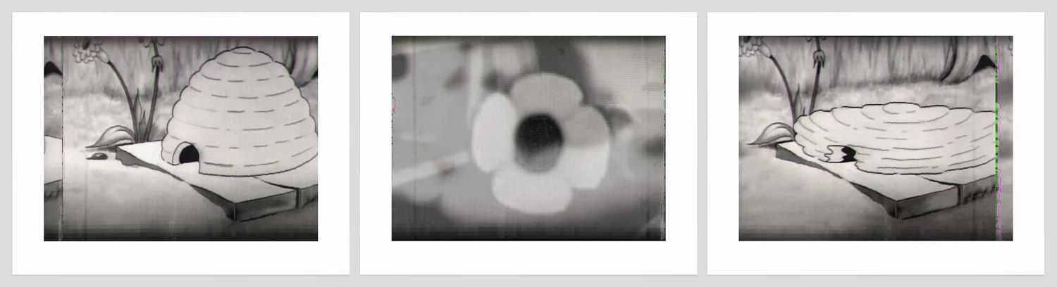 As the number of his new print editions has grown to over 1000, Bolton has organized this work into six overlapping sections. This ongoing series of prints marks a shift in Bolton’s long-term investigation of fabricated images and visual narratives. As in his previous print-based work, these new archival pigment prints are derived from digitally altered iPhone photographs and appropriated images. This fourth series, the ARCHIVAL PIGMENT PRINTS IV: ANALOGIES (2023) section, was added to expand the catalogue of Bolton’s ever-growing number of diptych and multi-panel prints. In these newer prints, Bolton has developed a different type of associative narrative structure in which analogous images are arranged to draw out random or chance visual parallels. In making these archival pigment prints, Bolton has developed an all-digital working and printing process. Resembling printouts of corrupted digital files, these new pigment prints display their purely digital origins and means of production through applied layers of glitch filter effects that introduce chance and random RGB shifts, shakes, slices, scan lines, double exposures, and distortions.